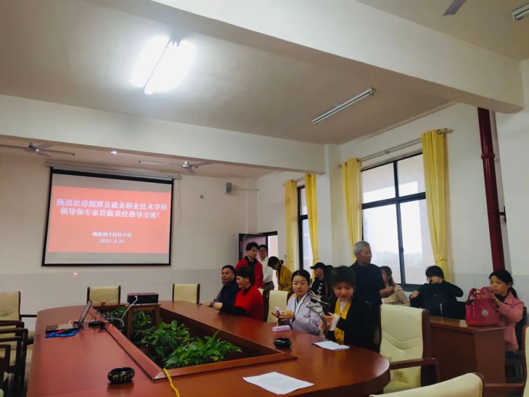 近日,应学校举办者邀请,湘潭县就业职业技术学校校长邓清波,教务科科长刘洁,德育教师方寒玲、文花,班主任聂丹等代表来我校进行两校交流。